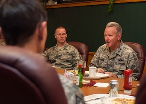 Maj. Gen. William Binger, 10th Air Force commander, visited the 419th Fighter Wing this weekend to talk with Airmen and tour the wing's various mission areas. While here, he met with wing officers and enlisted Airmen to discuss their questions or concerns. The 419th is one of several fighter wings