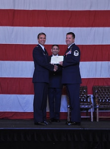 Chief Master Sgt. Carmen Madia (left), 419th Fighter Wing command chief, and Col. Bryan Radliff (center), 419th commander, get an equipment demonstration from Master Sgt. Fred Schoeffler, 419th Explosive Ordnance Disposal technician. The wing leaders spent the afternoon with the EOD team July 20 to