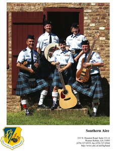 Instead of an M-16, they carry a Sgian Dubh, a small dagger, tucked into their knee-high socks. A sporran serves the purpose of their cargo pockets, and leather brogues take the place of tightly-laced combat boots. Though these Airmen wear kilts and play the bagpipes, they are not from the Royal Air